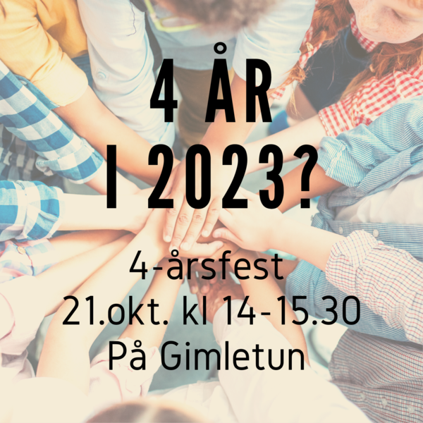 Velkommen til fest kun for 4-åringer! Lørdag 21. okt kl 14-15.30 vil vi gjøre stas på 4-åringene våre på Gimletun. Mamma og/eller pappa kan være med, men søsken har ingen adgang. På gudstjenesten søndag 22. okt kl 11 vil vi ha 4-åringene på scenen og gi dem en gave fra menigheten. Meld på ditt barn til ostsida@frikirken.no.